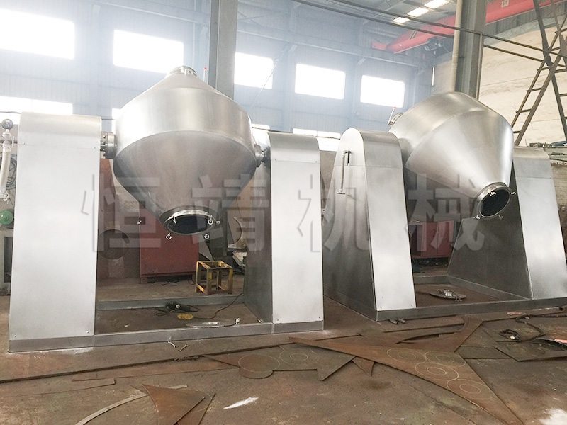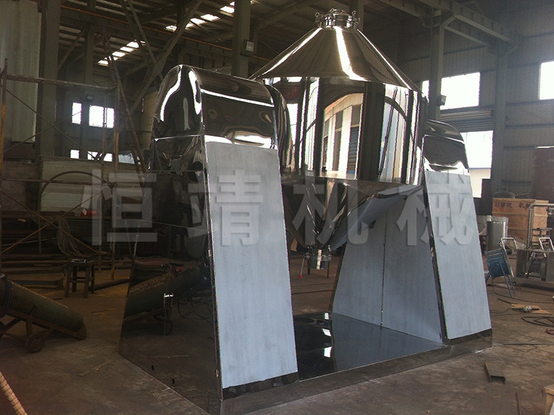 SZG乐鱼(中国)官方网站双锥回转真空干燥机是集混合、干燥于一体的新型干燥机。将冷凝器,真空泵与干燥设备配套,组成真空干燥装置。(如不需要回收溶剂,冷凝器可不用)本机设计先进,内部结构简单,清扫容易,物料能全部排出,操作简便。能降低劳动强度,改善工作环境。同时因容器本身回转时物料亦转动,但器壁上不积料,故传热系数高,干燥速率大,不仅节约能源,而且物料干燥均匀充分,质量好。可广泛应用于制药、化工、食品、染料等行业的干燥。